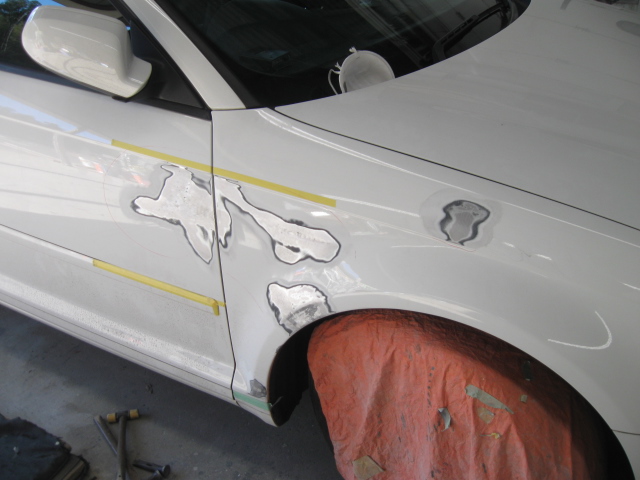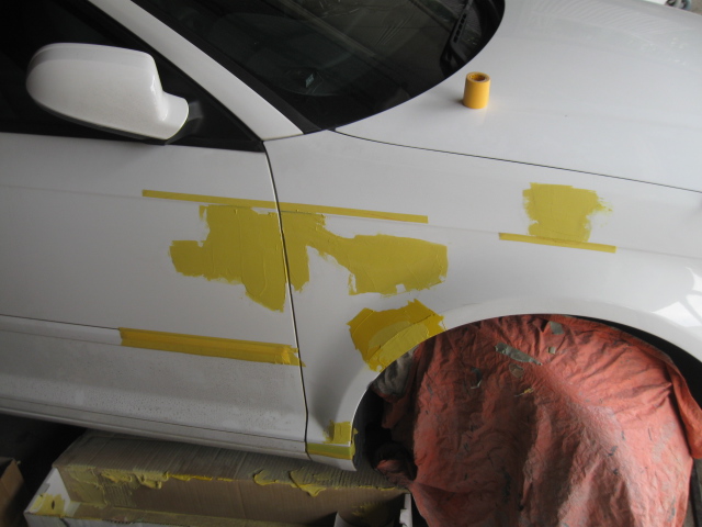 パテ修理@ フロントフェンダーとフロントドアに、パテを塗布します。