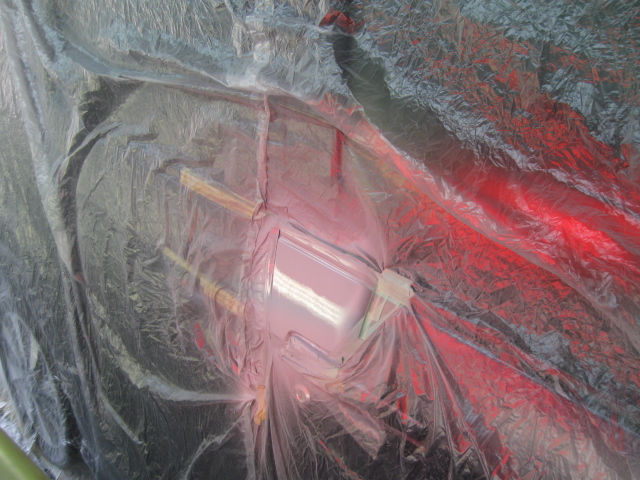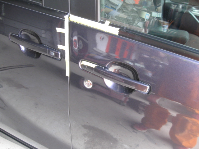 eKワゴンの運転席ドアを開けた時、駐車場の柱に当てて、凹ませたそうです。