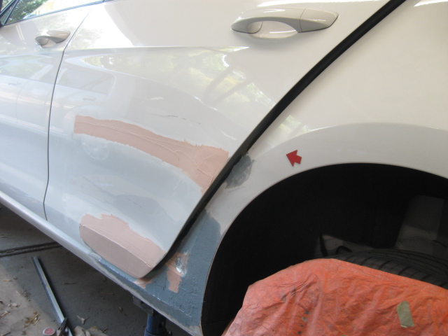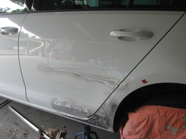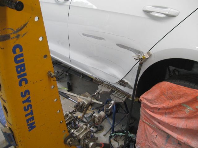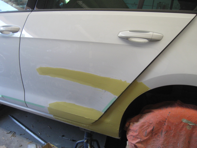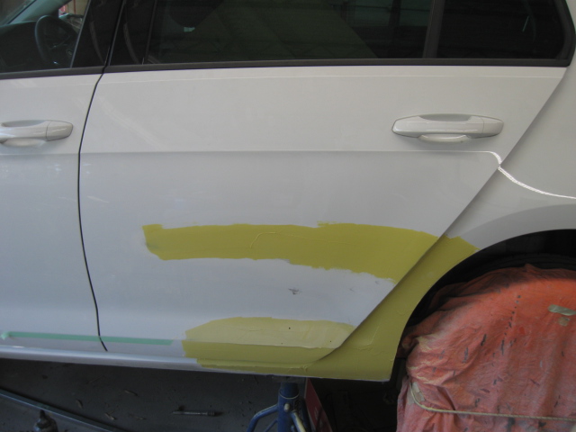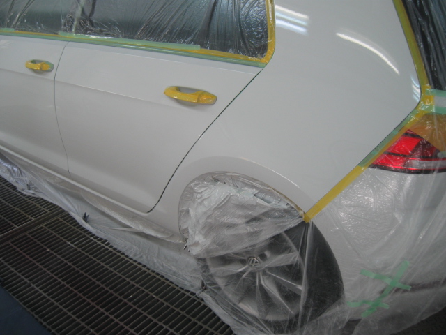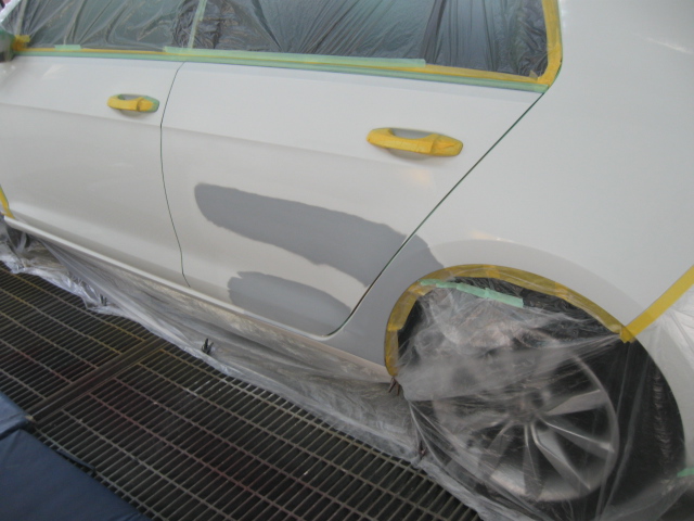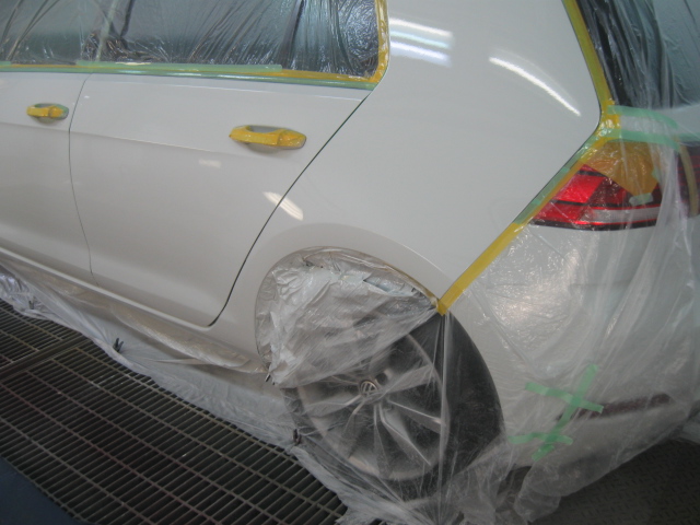 フォルクスワーゲン・ゴルフのドア、リヤフェンダー凹み修理です。牛久市、30代男性の依頼です