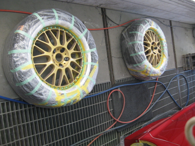 下地塗装@ 社外品アルミホイール(2ピースタイプ)のゴールド部の塗装修理です。