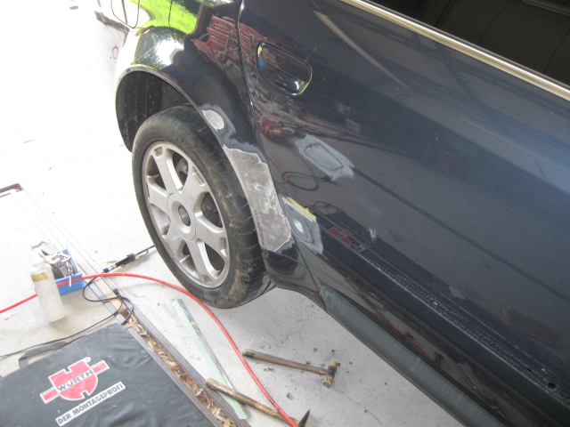 土浦市 アウディ・A4 ドアキズ修理 フェンダーへこみ板金塗装