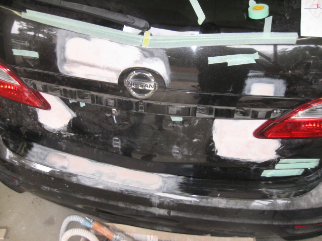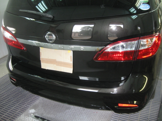 日産ラフェスタ・ハイウェイスターのバックドア、凹み修理です。40代女性です。