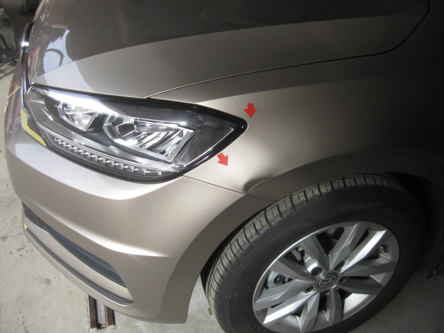 アウディ・A5のフロント・ドア、きず修理と、板金塗装です。「台風でトタンが飛んで来たかも?ドアが凹んでしまった。」小見玉市の40代、男性が来店です。以前、修理したビートルのお客様が、とても綺麗に修理してくれたので、ご紹介をされました。